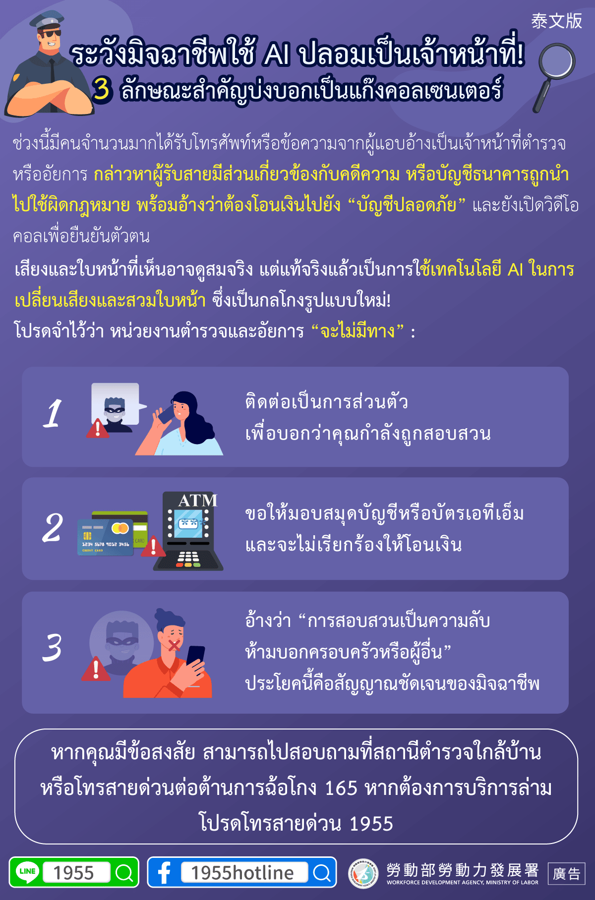 หรือโทรสายด่วนต่อต้านการฉ้อโกง 165 หากต้องการบริการล่าม โปรดโทรสายด่วน 1955