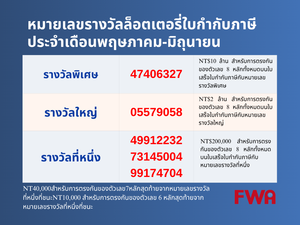 (FWA 2025/11/5)วันนี้ (5 พ.ย.) เป็น วันสุดท้าย ที่คุณจะสามารถแลกรับรางวัล สลากใบเสร็จ (ใบกำกับภาษี) ประจำงวดเดือน พ.ค.-มิ.ย. ได้
