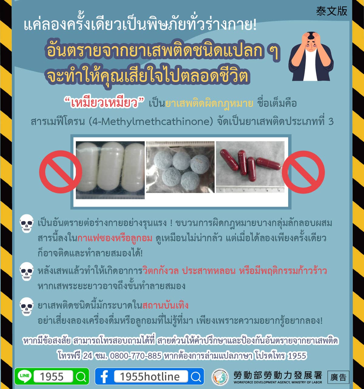 หากมีข้อสงสัย สามารถโทรสอบถามได้ที่ สายด่วนให้คำปรึกษาและป้องกันอันตรายจากยาเสพติด โทรฟรี 24 ชม. 0800-770-885 หากต้องการล่ามแปลภาษา โปรดโทร 1955