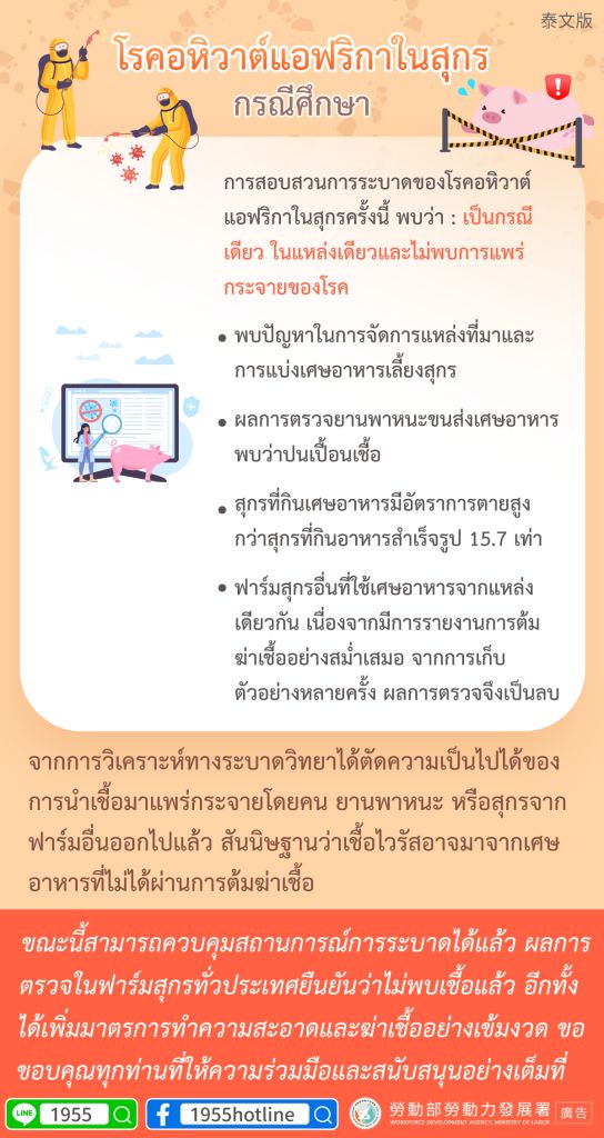 (FWA 2026/02/23)การสอบสวนการระบาดของโรคอหิวาต์แอฟริกาในสุกรครั้งนี้ พบว่า : เป็นกรณีเดียว ในแหล่งเดียวและไม่พบการแพร่กระจายของโรค
