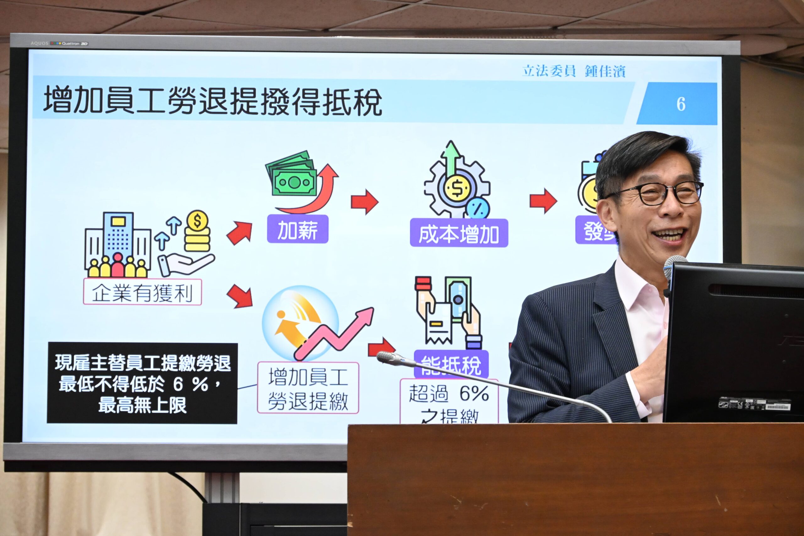 新聞「加薪減稅」成效有限 立委籲抵稅需彈性 以政策創新引導企業 提升薪資與退休保障女 FWA 編輯部 1 天 ago share【外勞社記者黃秀娟2025年10月16日報導】立法院財政委員會16日邀請財政部進行業務報告。立委鍾佳濱指出,若要讓「加薪減稅」政策真正落實,政府應從制度設計著手,讓抵稅機制更具彈性與誘因,其中他建議雇…<詳全文>想了解更多資訊?加入會員-暢讀所有內容訂閱