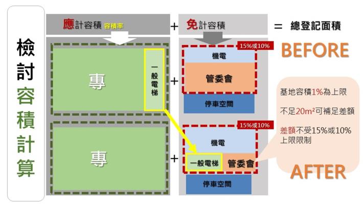 內政部表示,虛坪改革包括「檢討容積計算」、「停車空間分配」及因應高齡化社會的「一般電梯增列為免計容積項目」等3大重點,並增訂管委會設置面積的合理標準及上下限,以引導公設合理規劃及設計,滿足社區運作的基本需求同時,也避免不實用的公設出現。