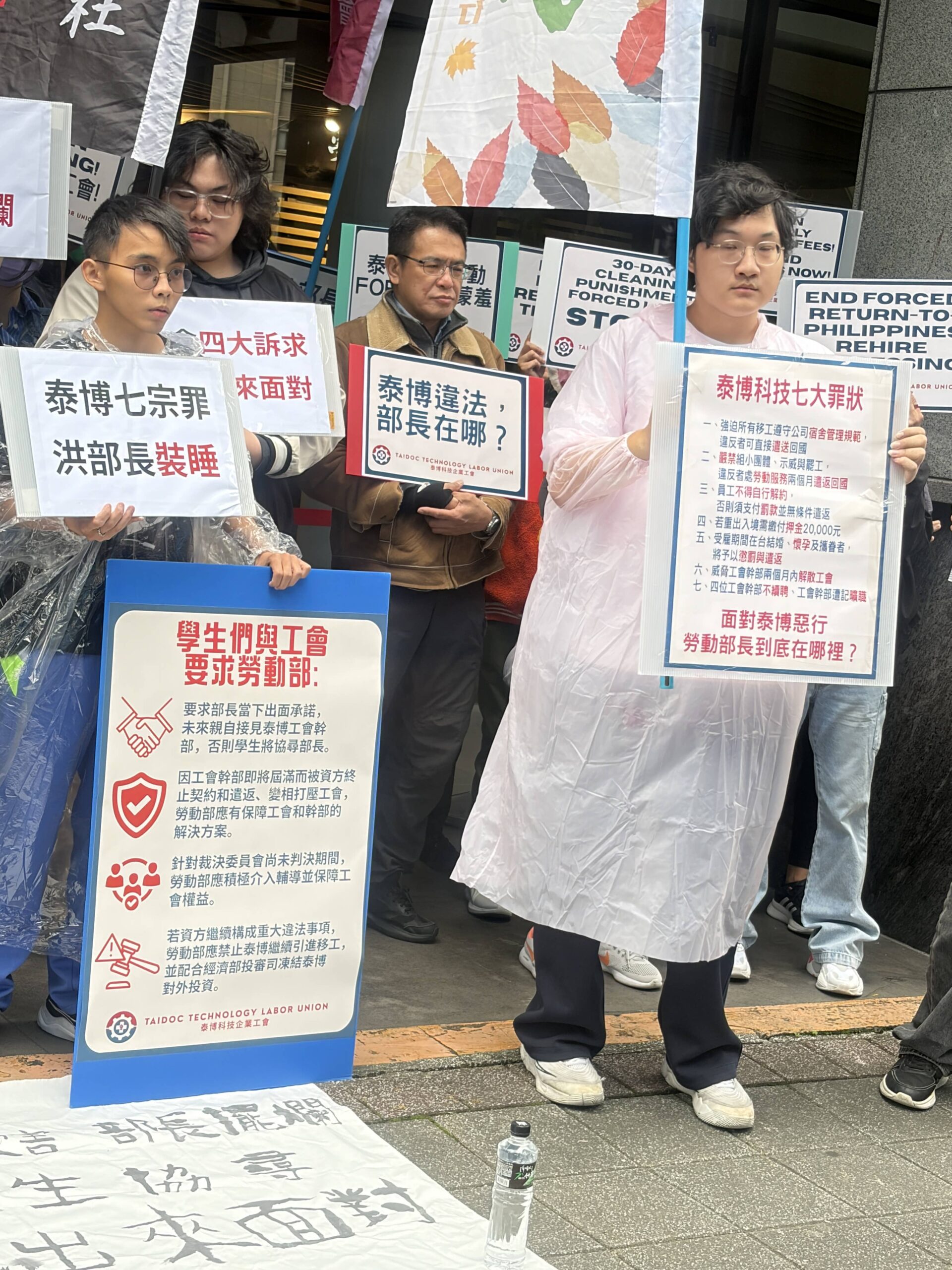 新聞泰博被控以嚴苛管理移工 學生團體赴勞動部抗議博被控以嚴苛管理移工 學生團體赴勞動部抗議 FWA 編輯部 1 天 ago share【外勞社記者黃秀娟2025年11月20日報導】泰博科技爆發勞資爭議,遭控以嚴苛、霸道的內部規則對待外籍移工,並打壓其組織工會權利,台大勞工社等逾10個學生團體20日前往勞動部抗議,質疑部長洪申翰「擺爛…<詳全文>想了解更多資訊?加入會員-暢讀所有內容訂閱