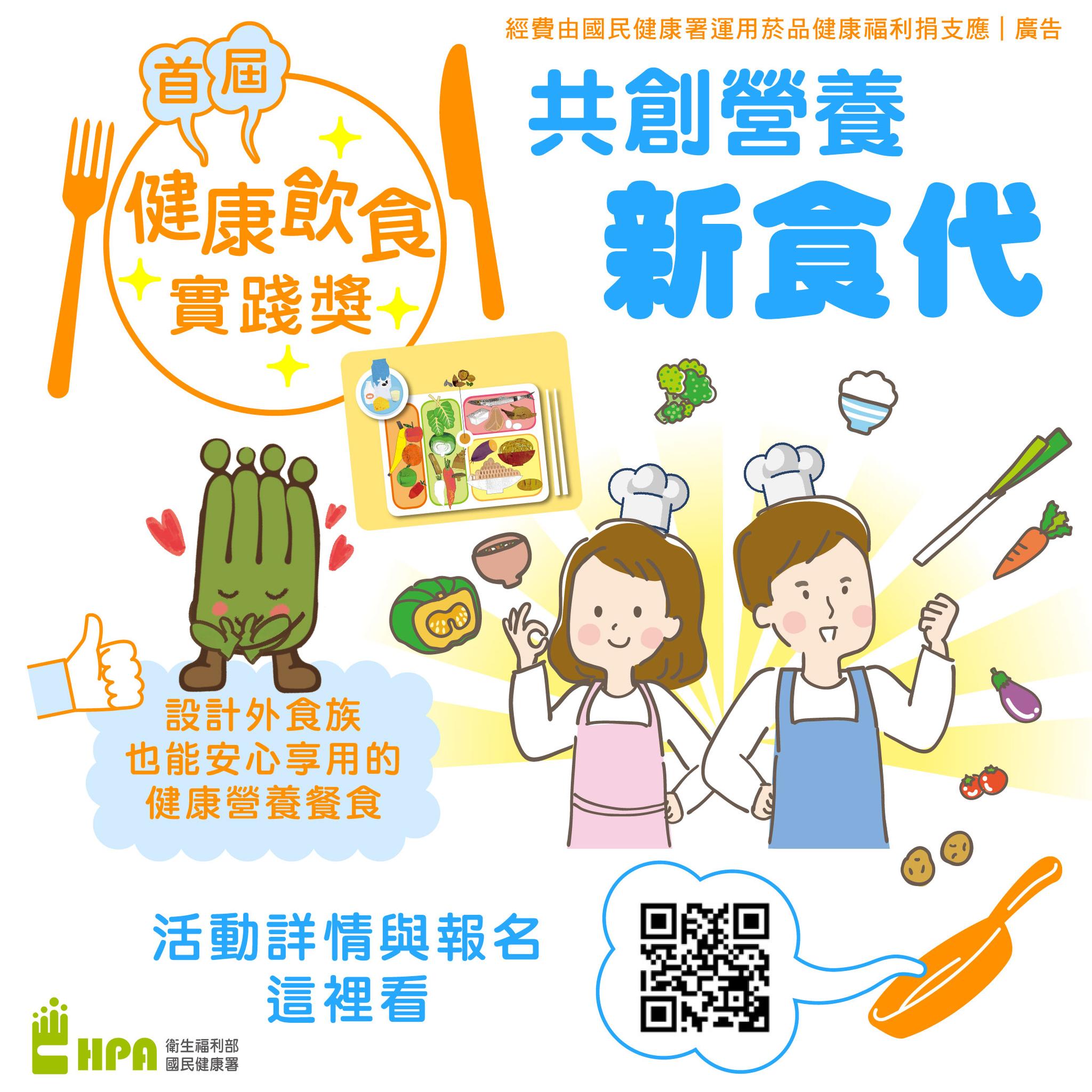 「健康飲食實踐獎」即日起開放報名至11月19日止,歡迎踴躍報名參加,秀出您的健康餐食,相關活動資訊請參考國民健康署官網(https://www.hpa.gov.tw/Pages/Detail.aspx?nodeid=128&pid=19523)或QR Code連結報名。