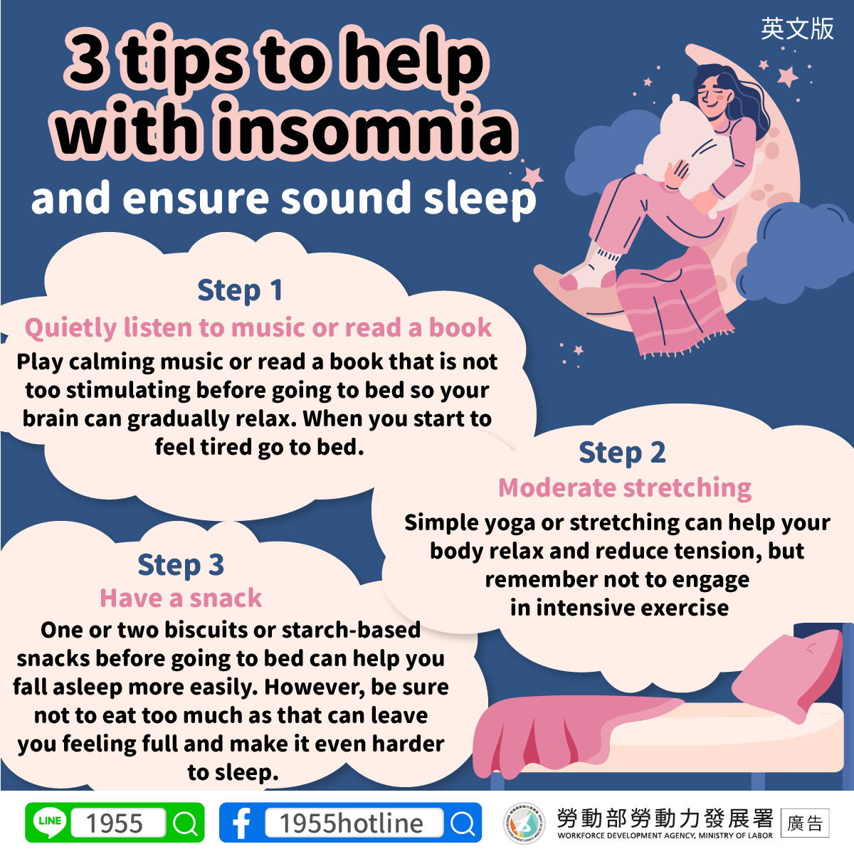 睡前播放輕柔音樂,或不太刺激的書,幫助大腦慢慢放鬆,等到睡意漸漸來臨,再回到床上繼續休息