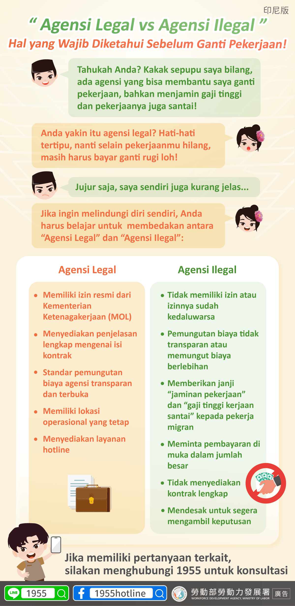 (FWA 2025/10/27)A:Tahukah Anda? Kakak sepupu saya bilang, ada agensi yang bisa membantu saya ganti pekerjaan, bahkan menjamin gaji tinggi dan pekerjaanya juga santai!
