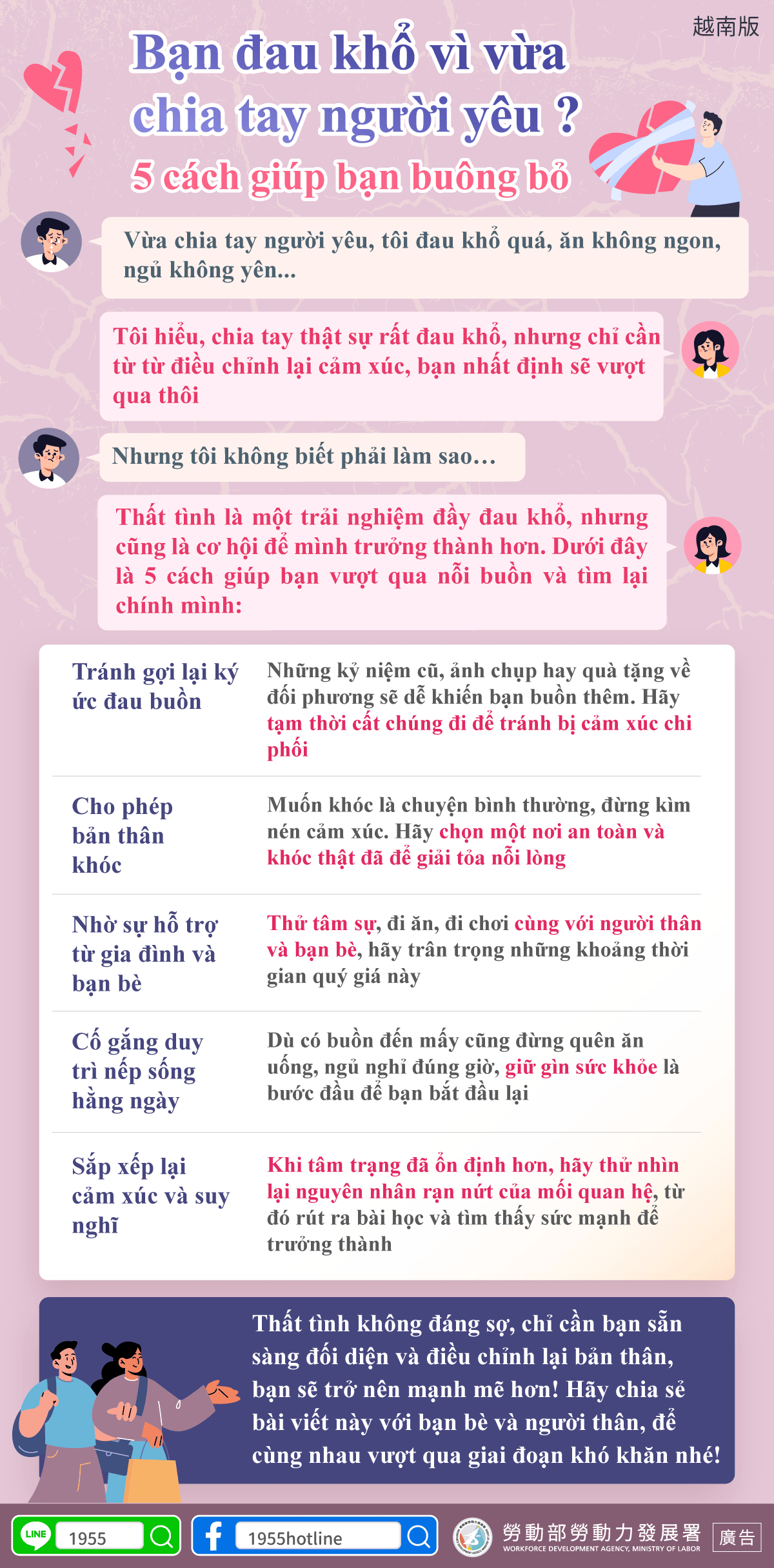 B:Thất tình là một trải nghiệm đầy đau khổ, nhưng cũng là cơ hội để mình trưởng thành hơn. Dưới đây là 5 cách giúp bạn vượt qua nỗi buồn và tìm lại chính mình: