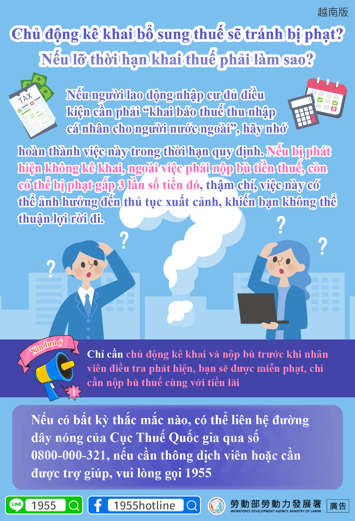 Nếu người lao động nhập cư đủ điều kiện cần phải “khai báo thuế thu nhập cá nhân cho người nước ngoài”, hãy nhớ hoàn thành việc này trong thời hạn quy định. Nếu bị phát hiện không kê khai, ngoài việc phải nộp bù tiền thuế, còn có thể bị phạt gấp 3 lần số tiền đó, thậm chí, việc này có thể ảnh hưởng đến thủ tục xuất cảnh, khiến bạn không thể thuận lợi rời đi.