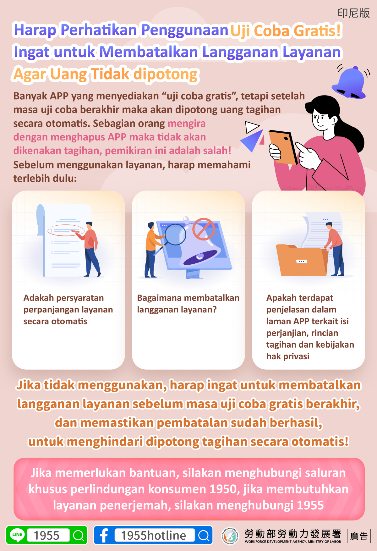 如需協助,請撥打消費者保護專線1950,如需通譯服務請撥打1955