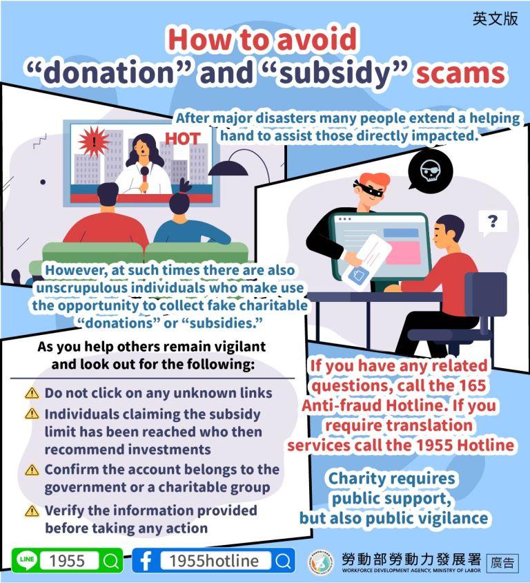 但是在這個時候,也要小心不肖份子趁機利用「捐款」或「補助」來行騙!