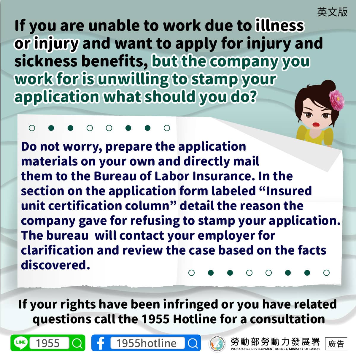 如果你因病或受傷不能工作,想申請傷病給付,但公司不願意在申請書上蓋章,該怎麼辦?