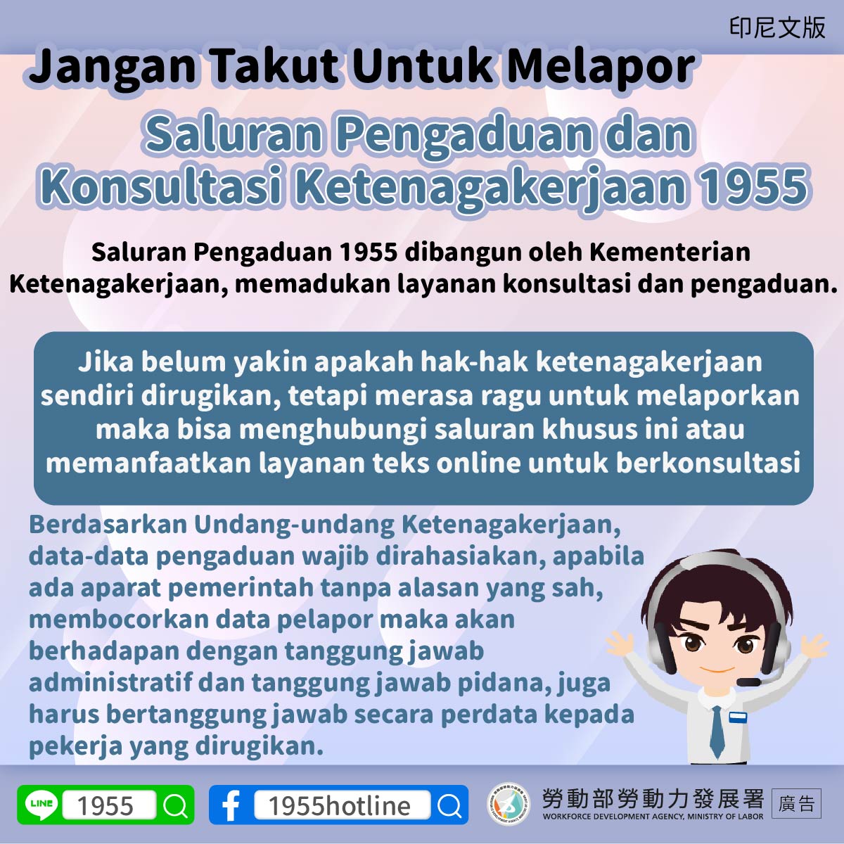 Saluran Pengaduan 1955 dibangun oleh Kementerian Ketenagakerjaan, memadukan layanan konsultasi dan pengaduan.