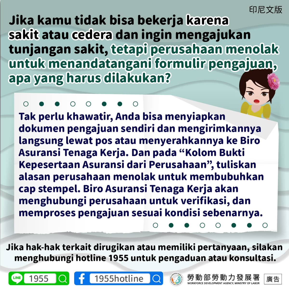 Jika hak-hak terkait dirugikan atau memiliki pertanyaan, silakan menghubungi hotline 1955 untuk pengaduan atau konsultasi.