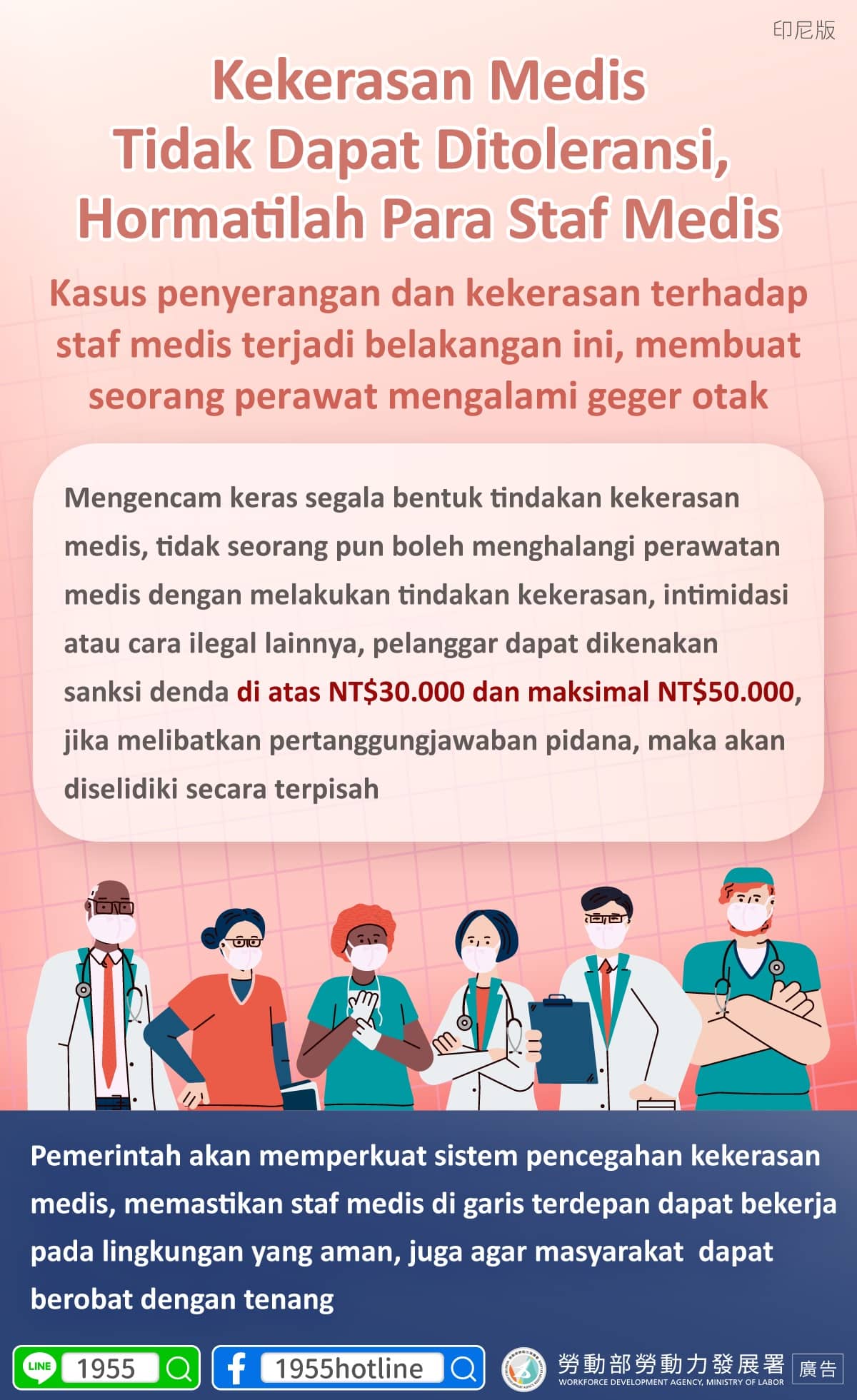 Pemerintah akan memperkuat sistem pencegahan kekerasan medis, memastikan staf medis di garis terdepan dapat bekerja pada lingkungan yang aman, juga agar masyarakat dapat berobat dengan tenang