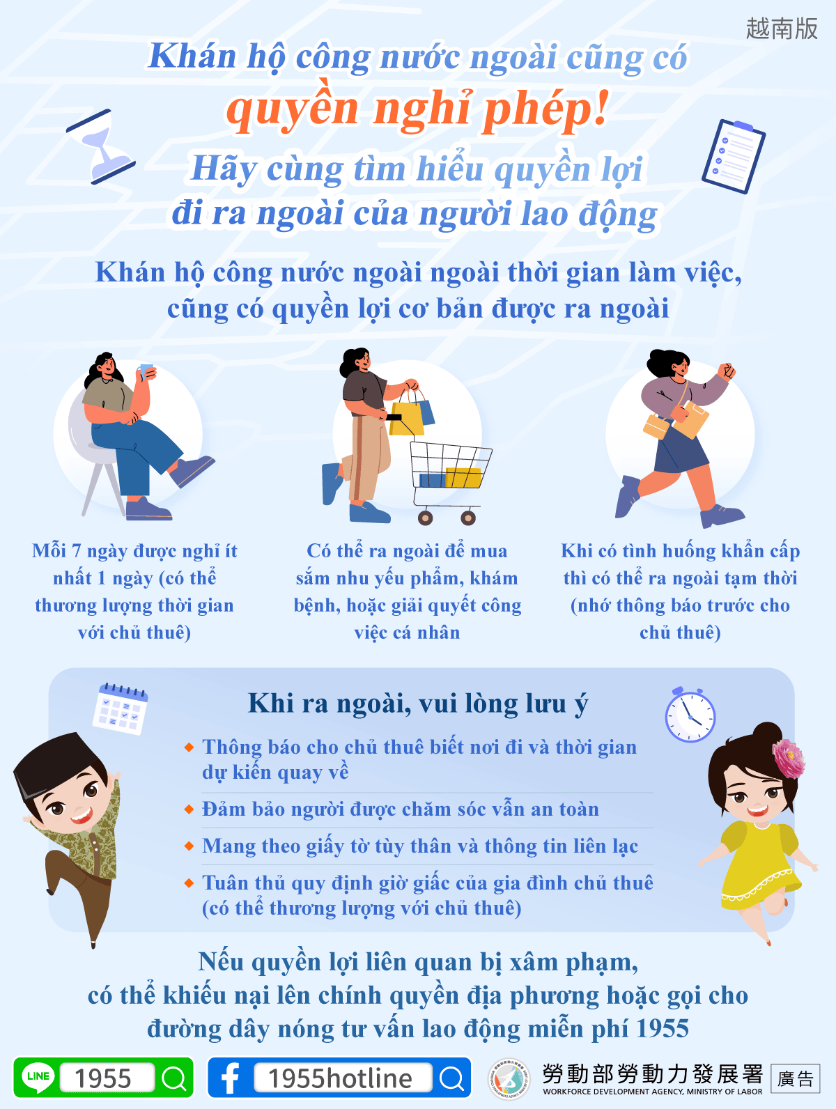 Khán hộ công nước ngoài ngoài thời gian làm việc, cũng có quyền lợi cơ bản được ra ngoài