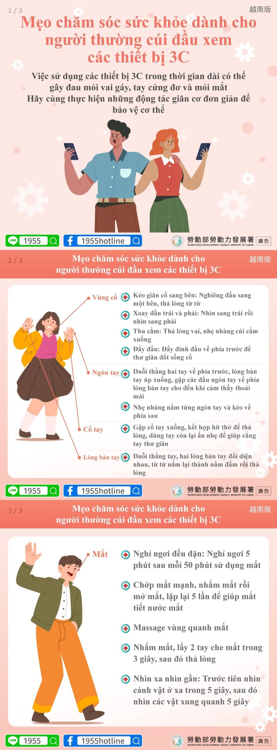 長時間使用3C產品可能造成肩頸痠痛、手部僵硬與眼睛疲勞一起做簡單伸展保護身體