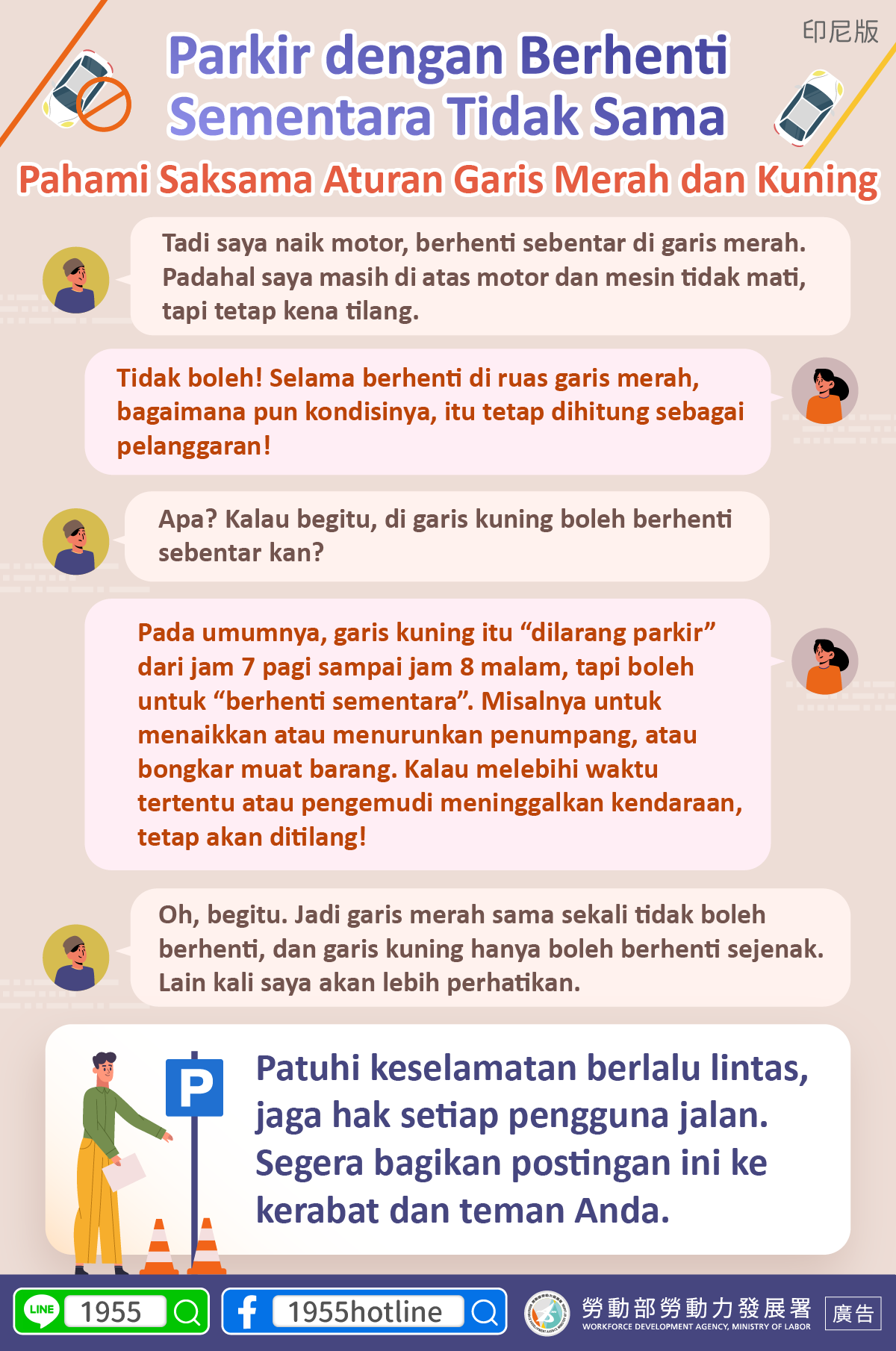 A:Oh, begitu. Jadi garis merah sama sekali tidak boleh berhenti, dan garis kuning hanya boleh berhenti sejenak. Lain kali saya akan lebih perhatikan.