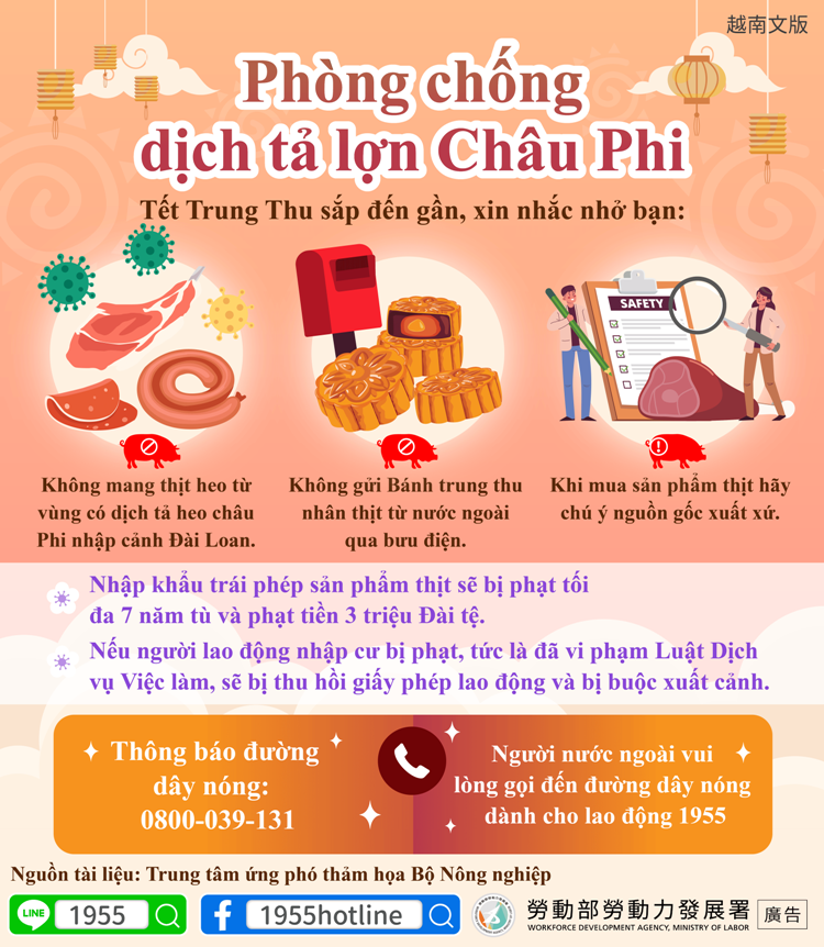 1.Không mang thịt heo từ vùng có dịch tả heo châu Phi nhập cảnh Đài Loan.